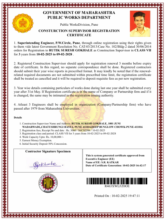 Arise Build Solution is officially licensed to operate as a government contractor. This certification enables us to participate in large-scale and government-approved infrastructure projects while ensuring full compliance with legal and regulatory standards. Our licensed status highlights our credibility, proven expertise, and dedication to delivering reliable, high-quality solutions.